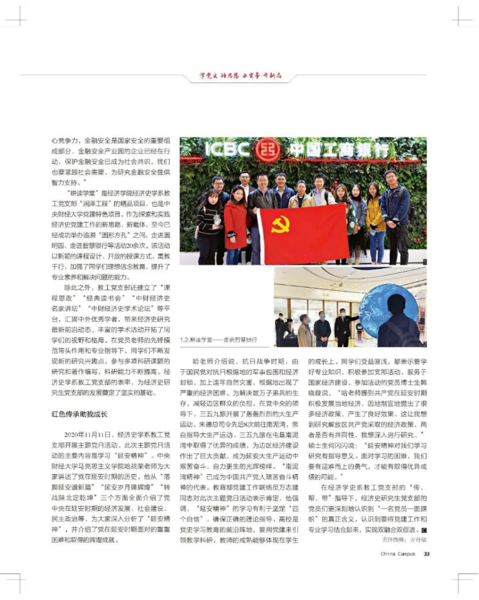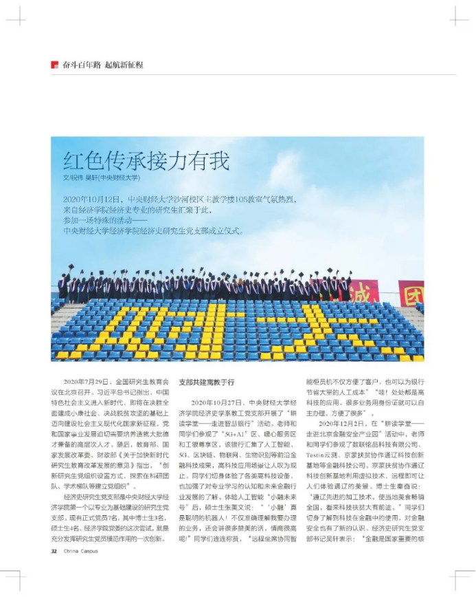 《大学生》杂志第316期以“红色传承接力有我”为题,报道了万象城官网经济史研究生党支部。现将全文转载如下。