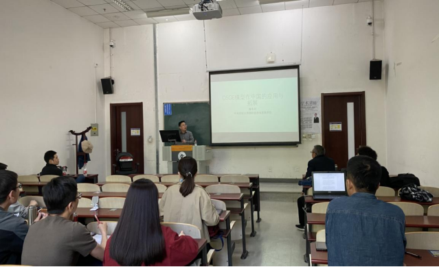 梅老师详细讲解了HANK模型的理论逻辑,并且给同学们介绍了他所研究的领域——土地财政政策,分析了立足中国实际的宏观经济研究方向,前瞻性的为同学们提供了DSGE在中国的研究前沿。梅老师讲解生动有趣,学者的风范深深的影响着同学们。梅老师积极与老师同学们进行互动,讲座结束后,梅老师耐心地解答和讲解了同学们对于DSGE的研究问题。