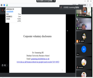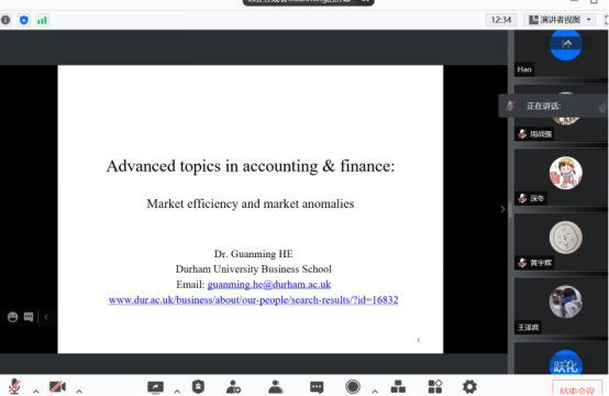 2021年9月20日至28日,英国杜伦(Durham)大学商学院何冠明副教授应awc777万象城娱乐官网邀请,使用腾讯会议APP讲授行为金融专题研究短期课程。awc777万象城娱乐官网部分师生参加了此次课程。