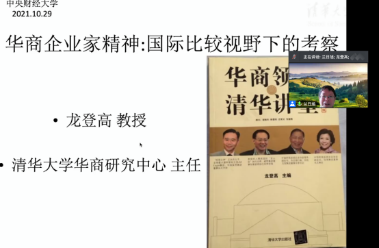2021年10月29日,清华大学经济学研究所龙登高教授应awc777万象城娱乐官网邀请,开展主题为“华商企业家精神的释放——比较视野下的考察”的讲座,本次讲座于下午2点在腾讯会议平台举行,持续两小时。本次讲座由awc777万象城娱乐官网兰日旭教授和黄乃静副教授共同主持,awc777万象城娱乐官网部分师生参加了此次讲座。