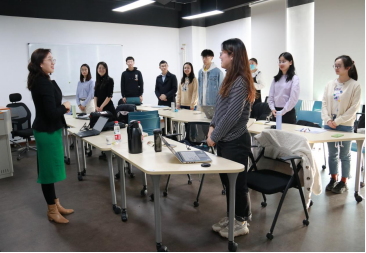 接着,李彦君老师以组织一次会议为例,从会场的布置、沟通交流技巧、形成会议闭环等方面入手,向在场的同学们生动地讲解会议礼仪,并不时地邀请在场同学分享自己的想法,通过全体参与、全员互动的形式帮助同学们树立良好的会务形象。