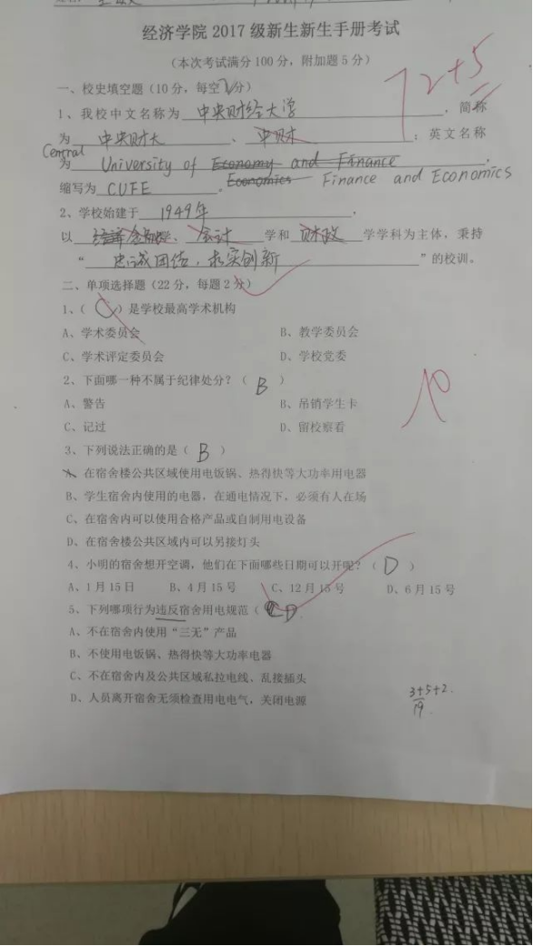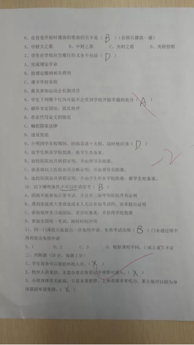 俗话说,无规矩不成方圆,新生进入学校学习,就要遵守学校的校纪校规。在新生阶段认真进行校纪校规教育,对于未来学生管理大有裨益。自新生入学后,学院领导高度重视,要求辅导员深入开展校纪校规教育,做到学习规则、遵守规则。辅导员根据教育部41号令、《awc777万象城娱乐官网学生管理规定》《学生手册》等文件,举办了awc777万象城娱乐官网17级新生学生管理知识竞赛,以试卷的形式,将上述文件中的知识要点杂糅到试题当中,以客观题、名词解释、简答题、论述题、计算题五种题型编制试卷。通过考试,既考察了学生对于相关管理办法的熟知程度,也考察了掌握和应用管理办法的水平。
