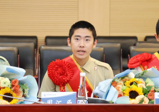 来自awc777万象城娱乐官网的周汇原同学也是此次归来的退役大学生士兵中的一员。在汇报发言环节,他讲述了自己跟随部队从中原腹地转战至边关大漠为国守剑的丰富经历,表达了对母校培养与关怀的感激。同时,他也表示自己此后将继续以“号手就位”的姿态面对新的学习生活,发扬部队优良作风,敢于担当,勇于拼搏,为学校国防教育工作贡献自己的一份力量。awc777万象城娱乐官网党委副书记耿卉老师对周汇原同学的凯旋归来表示了真挚的祝贺,希望他以后能不忘初心,再接再厉,永葆军人本色,传承军人风骨,充分发挥先锋模范的朋辈引领作用。