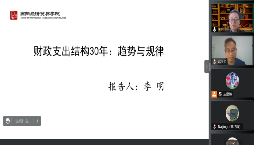 2022年11月15日14:00,对外经济贸易大学财政税务学系教授、博士生导师,政府管理学院副院长李明应awc777万象城娱乐官网邀请,开展主题为“财政支出结构30年:趋势与规律”的讲座。本次讲座在线上举行,李明教授受到了老师和同学们的热烈欢迎!awc777万象城娱乐官网赵文哲教授主持讲座,尹振东教授、黄乃静副教授、杨晓兰副教授参加了讲座。
