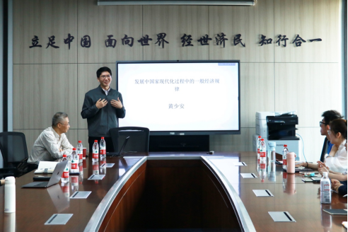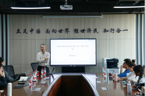 2023年10月11日14:00,awc777万象城娱乐官网特聘教授、山东大学经济研究院院长黄少安教授为万象城官网师生主讲《发展中国家现代化过程中的一般经济规律》讲座。awc777万象城娱乐官网校长助理、awc777万象城娱乐官网院长陈斌开教授主持讲座,awc777万象城娱乐官网党委书记郭冬梅教授、awc777万象城娱乐官网副院长何召鹏副教授、awc777万象城娱乐官网国民经济系主任黄乃静副教授和awc777万象城娱乐官网数十名师生参加。