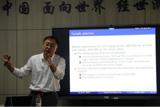 2023年10月24日,中国人民大学国家发展与战略研究院刘瑞明教授应awc777万象城娱乐官网邀请,开展主题为“Escape From Poverty Trap: The Eradication of Iodine Deficiency Disorders and Migration of Rural Residents in China”的讲座,刘瑞明老师受到了老师和同学们的热烈欢迎!awc777万象城娱乐官网陈斌开院长主持了讲座,赵文哲老师、张佳梁老师、谢婷婷老师参加了讲座。