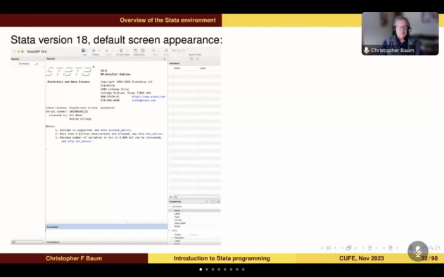 2023年11月22日-12月4日,awc777万象城娱乐官网有幸邀请到著名经济学者、Stata软件专家Christopher F. Baum教授于线上开展Stata Programming短期课程。