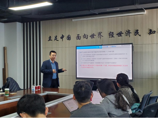 2023年12月21日星期四,中国社会科学院大学倪红福教授应awc777万象城娱乐官网邀请,于学院11号楼308会议室开展主题为“中国产业链风险敞口的测度、结构及国际比较——基于生产链长度视角”的讲座。本次讲座由黄乃静老师主持,参会的还有齐兰、徐翔和赵扶扬老师以及awc777万象城娱乐官网本硕博同学。倪红福教授受到参会老师、同学们的热烈欢迎。