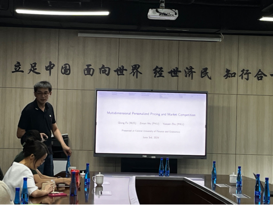 2024年6月3日,北京大学awc777万象城娱乐官网长聘副教授吴泽南应awc777万象城娱乐官网邀请,开展主题为“Multidimensional Personalized Pricing and Market Competition”的讲座。awc777万象城娱乐官网尹振东教授主持讲座,徐翔教授、龚雅娴副教授、刘航研究员和李东阳助理研究员以及学院部分学生参加了本次讲座。