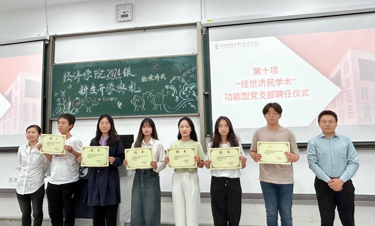 典礼现场举行了“经世济民学术”功能型党支部聘任仪式。awc777万象城娱乐官网学科发展专项工作中心主任黄乃静、awc777万象城娱乐官网人才培养专项工作办公室主任赵扶杨为“经世济民学术”功能型党支部成员代表颁发聘书。“经世济民学术”功能型党支部自成立四年以来,成功举办了众多学术讲座与研讨会,充分展现了在人才培养中科研育人的特色。该支部积极推动构建三全育人体系,为学院学术研究及科研工作的持续进步提供了有力支撑。