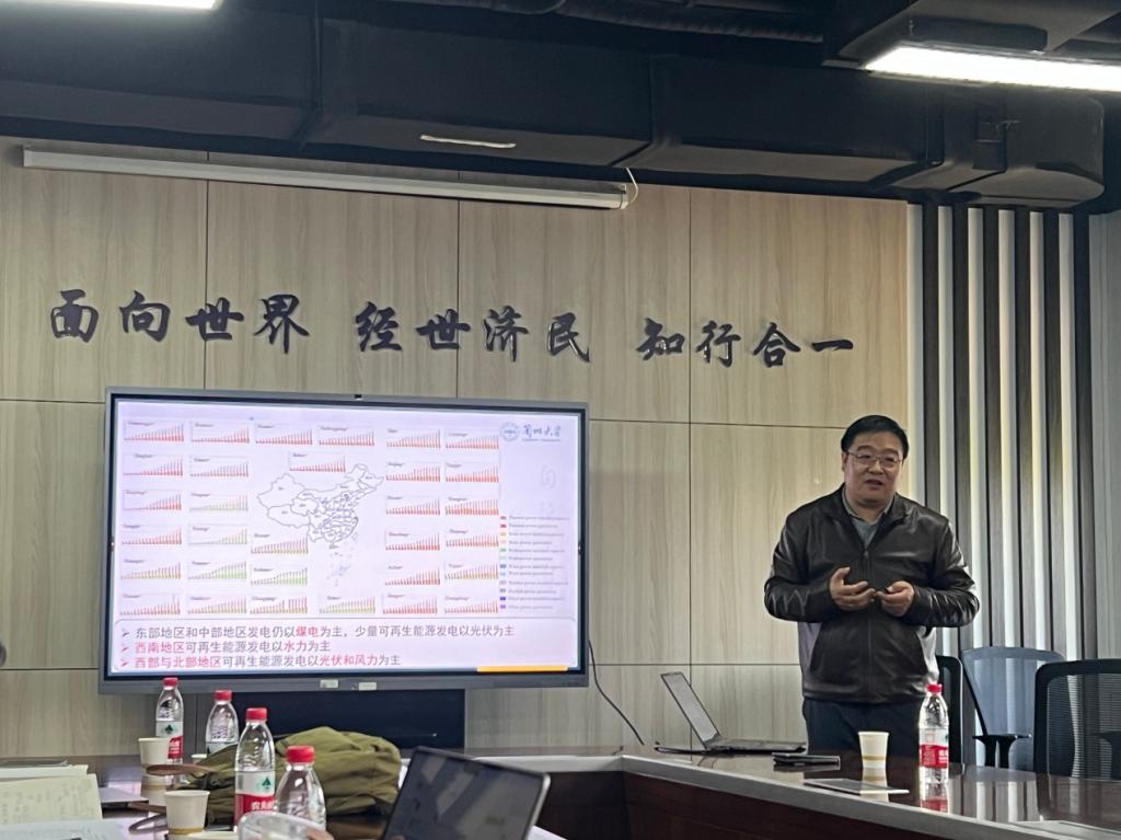 2024年10月29日下午,兰州大学管理学院副院长张国兴教授应邀为万象城官网师生主讲“Evaluating Environmental Policy Effectiveness on Power Structure: Insights from China's Power Sector Regulations”讲座,讲座于学院楼11号楼308会议室举行。awc777万象城娱乐官网院长郭冬梅教授主持讲座,俞剑老师、黄乃静老师、戴若尘老师和三十余名同学参加了此次讲座。