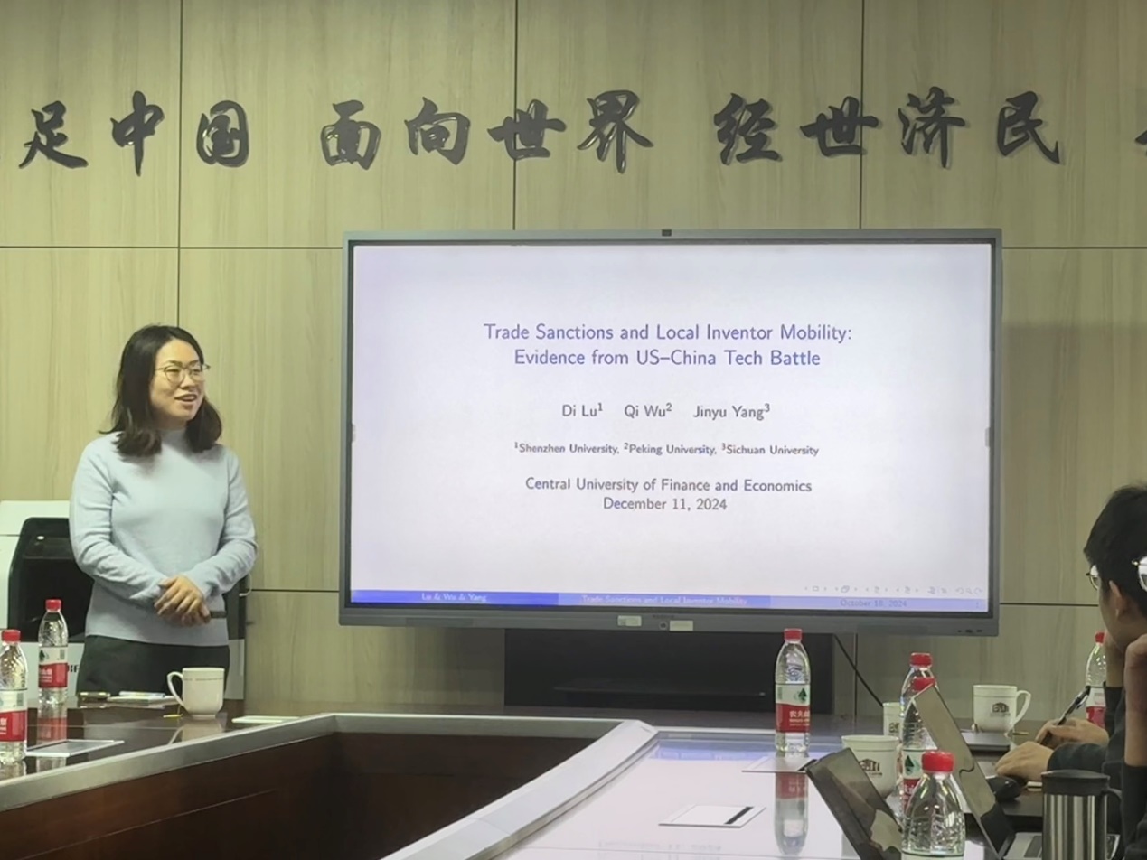 2024年12月11日下午,北京大学光华管理学院应用经济学系助理教授吴祁应邀为awc777万象城娱乐官网师生主讲“Trade Sanctions and Local Inventor Mobility: Evidence from US-China Tech Battle”专题讲座。此次讲座于沙河校区学院11号楼308会议室举行。awc777万象城娱乐官网院长郭冬梅教授主持,多位教师及40余名学生参加了讲座。
