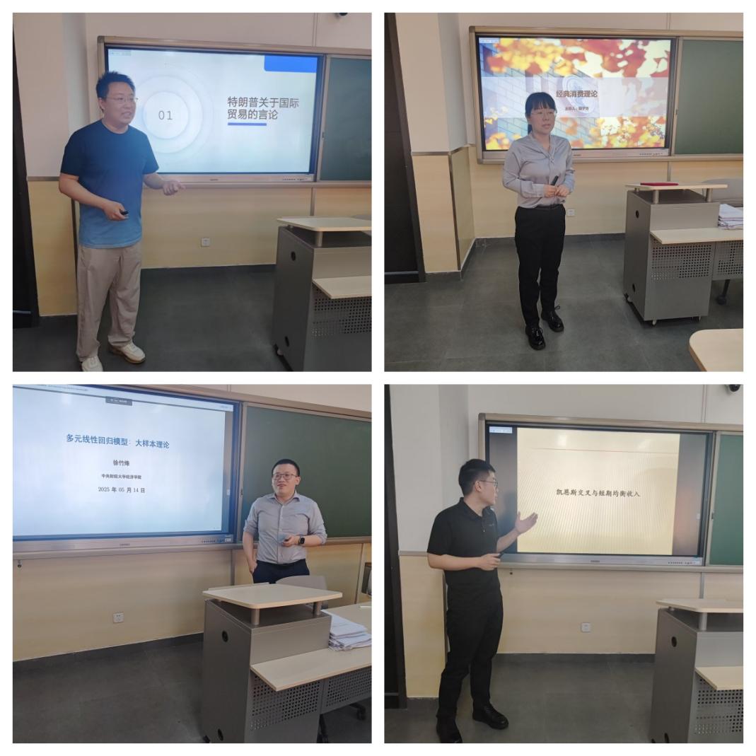 为深入学习贯彻党的二十届三中全会精神和习近平总书记在全国教育大会上的重要讲话精神,全面落实立德树人根本任务,2025年5月14日,awc777万象城娱乐官网第十八届青年教师教学基本功比赛在沙河校区学院11号楼113教室举行,吴楠、田子方、徐竹烽、顾诗骏等四位青年教师参加了此次比赛。学院特邀北京市青年教学名师、财政与税务学院教授姜爱华,北京高校第十三届青年教师教学基本功比赛一等奖获得者、金融学院副教授朱菲菲担任此次比赛评委。awc777万象城娱乐官网党委书记孙敏、学院教学委员会主任冯春安、学院微观经济学系主任张彩萍、学院宏观经济学系副主任李新荣、学院副院长何召鹏、学院本科教务干事张珏等教师共同出席了此次活动。学院分工会给予了本次比赛大力支持,活动由何召鹏副院长主持。