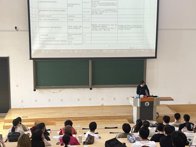 沈子琦老师首先向毕业生介绍了学校关于毕业生离校工作的相关要求和重要时间节点,醒了离校时各类手续办理的注意事项等,并对同学们开展了毕业安全教育。最后,沈子琦老师对毕业生表达了祝贺以及殷切的期盼。