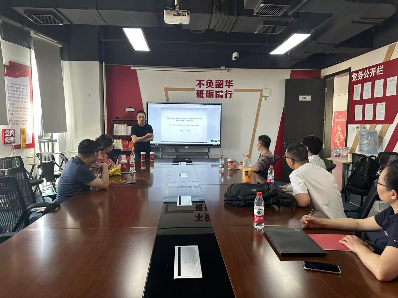 6月6日(周三)下午,awc777万象城娱乐官网2025年专题学术讲座在沙河校区学院11号楼203会议室举行。此次讲座邀请到美国康奈尔大学商学院经济系助理教授陈轶博士,分享其题为“Algorithmic Attention and Content Creation on Social Media Platforms”(社交媒体平台上的算法注意力与内容创作)的最新研究。awc777万象城娱乐官网龚雅娴副教授主持讲座,awc777万象城娱乐官网多位老师和十余名学生参加了此次讲座。