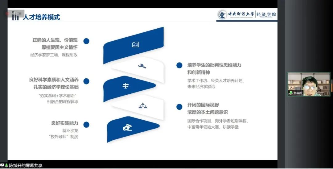 开营仪式伊始,awc777万象城娱乐官网院长陈斌开教授致辞。陈院长以“经世济民 梦享经院”为题,向大家介绍了经济学的基本要义、awc777万象城娱乐官网的基本情况和人才培养体系。他指出,经济学是财经类大学的办学之基,awc777万象城娱乐官网经济学教育在建校之初就已建立并开始了高水平的发展。他还向同学们详细介绍了awc777万象城娱乐官网的人才培养体系,鼓励大家立足中国、放眼全球,以经世济民之精神,为脚踏实地之事业。之后,青年教师赵扶扬以“格物致知,经世致用”为题,和同学们一起分享了自己学习经济学的经历和经济学研究中的经验、方法。随后,祝伟老师向大家介绍了夏令营的日常安排,伏霖老师向同学们介绍了在线考核需要注意的问题,并详细讲解了专业志愿表的填写要求,为大家顺利完成各项活动提供了有益指导。