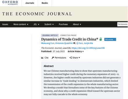 摘要:在宽松货币政策下,银行信用的扩张能否通过企业间的贸易信贷(trade credit)在生产网络(production network)中传导?作者通过对中国制造业行业数据的分析发现:在宽松货币政策下,上游行业由于规模优势和所有权性质等因素从银行获得更多的融资,然而上游行业对其下游客户的贸易信贷并未相应增加。因此,银行信贷的扩张在很大程度上只影响到了上游行业,而未能扩展到整个制造业。作者通过构造引入贸易信贷的生产网络模型,发现贸易信贷中的外部性是导致这一现象的重要原因,并指出政府可以通过将银行信贷与贸易信贷挂钩的方式缓解该外部性,从而使得贸易信贷在货币政策传导中发挥更大的中介作用。