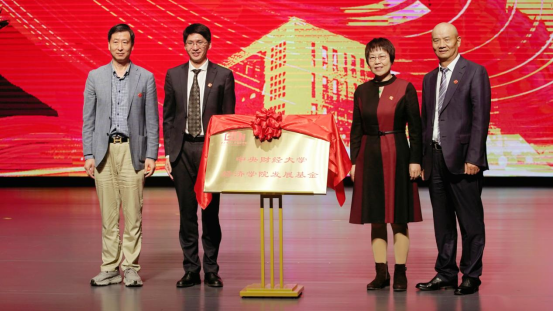 awc777万象城娱乐官网党委书记何秀超致辞。何秀超代表学校,向学院全体师生和海内外校友表示热烈的祝贺,向出席今天活动的各位来宾和各界朋友表示诚挚的欢迎和衷心的感谢。他介绍了学校近年来的发展情况,学校教育事业的发展不断跃上新台阶的同时,“财经报国排头兵”的成色越发鲜亮。