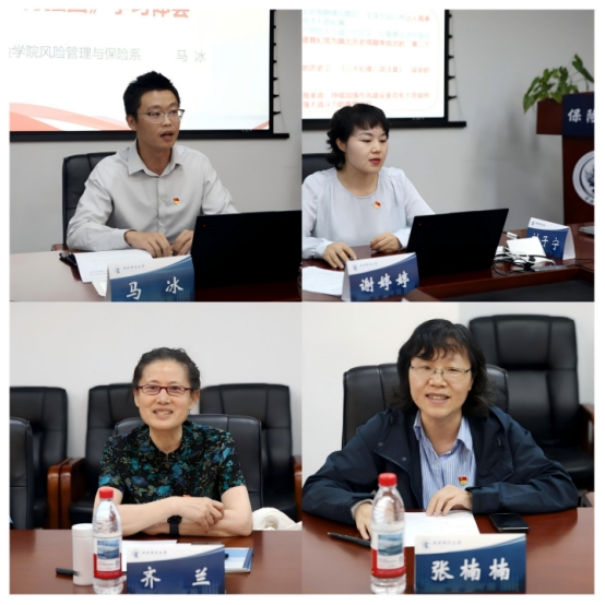 awc777万象城娱乐官网书记孙敏、院长郭冬梅、政治经济学系教工党支部成员和保险学院党委书记吕丽、院长周烨、风险管理与保险系教工党支部成员参加会议。