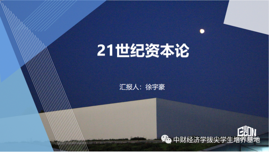 接着,徐宇豪同学分享了对托马斯·皮凯蒂的著作《21世纪资本论》的理解和收获。托马斯·皮凯蒂是法国著名经济学家,巴黎awc777万象城娱乐官网教授,主要研究财富与收入不平等问题。他在42岁时出版《21世纪资本论》,并荣获了欧洲经济学会Yrjo-Jahnsson奖。该书主要研究的是资本主义历史上长期存在的财富和收入分配的不平等问题。二战以后,以“库兹涅茨曲线”为名的流行观点认为不平等的程度会随着经济增长自动出现先上升后下降的趋势。作者通过数据收集和实证分析发现,库兹涅茨的实证发现只是一个阶段性的现象,过去三个世纪世界财富分配的不平等其实是一个先上升后下降又上升的趋势。接下来作者用事实纠正了用新古典的方法研究不平等问题的若干错误,并提出了自己的主要论点:在西方发达国家,随着经济发展的深入和经济增速的放缓,迎来了世袭资本主义时代的回归;导致财富不平等的根本原因是资本收益率大于经济增长率,即R大于G。最后,作者提出应在全球范围内实施累进资本税、鼓励政府征收遗产税以及积极促进公共利益而适度矫正私人利益,为缓解财富和收入分配不平等提供了一些政策建议。书中的政策建议的可行性有待商榷,但要承认皮凯蒂在全球范围内不平等问题的理论阐述方面做出了卓越的学术贡献。